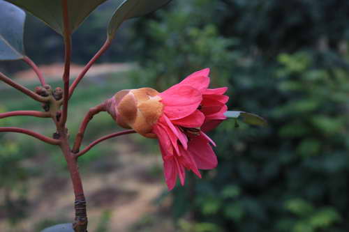 在植物园的广州第一村生长着一种春季开花的植物,其花美色艳,朵朵像红粉俏佳人,风情万种,令人赏心悦目。