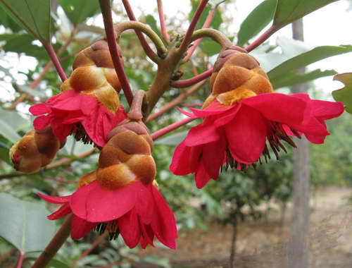 评价:因红花荷的花色“红红火火”,花期较长,是优良的木本花卉,现已逐步引种为庭园和生态风景林。 而且它在春节前后开花,十分应景,特别是经矮化处理后,有望从深山野林里登入人们的大雅之堂,成为广州地区著名的年宵花卉之一。此外,它的材质较轻,结构细,色泽美观,可做家具、车船、胶合板和贴面板用材等。