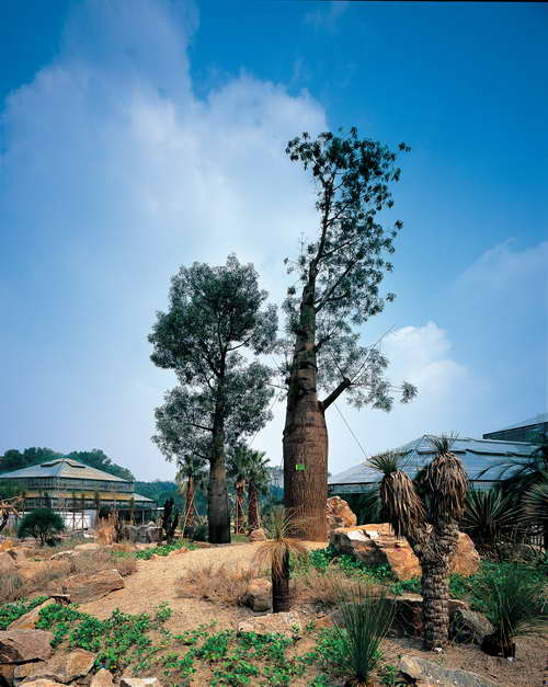 本区主要展示原产地在澳洲荒漠地带的沙生植物,收集展示植物种类50余种。以高大伟岸、形如巨瓶的昆士兰瓶子树(Brachychiton rupestris),秀气俊朗、素有澳洲黑马王子之称的黑孩子树(Xanthorrhoea australis),身形魁梧、颇具王者之风的澳洲摩尔大苏铁(Macrozamia moorei)等为群落骨干,配合沙丘、点缀巨石,再疏密有致的配置其他中小型沙生植物,展现在游人眼前的是别具一格、独有韵味的澳洲风情。