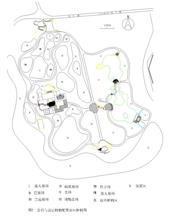 探究姜目植物在自然界中最适宜生长的环境,采用相对集中的方法设置八个科种植区、一个综合种植区和两个室内研究实验点。分科种植区在确保科学研究、引种、驯化栽培功能的基础上,尽量营造具有观赏价值的植物景观。