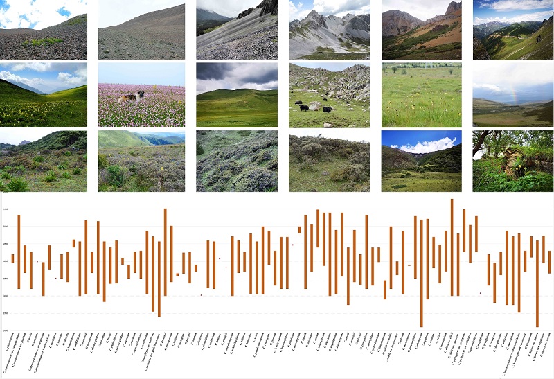 图3.垂头菊属所有种、变种海拔信息及代表性生境