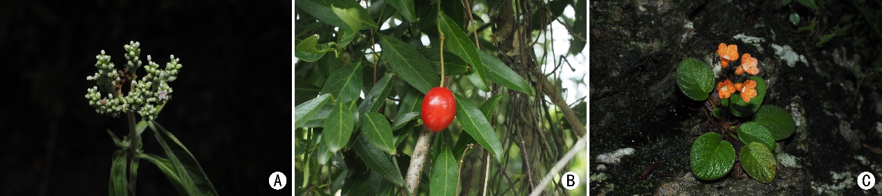 图2. A:红芽大戟;B:牛眼睛;C:黄花马铃苣苔