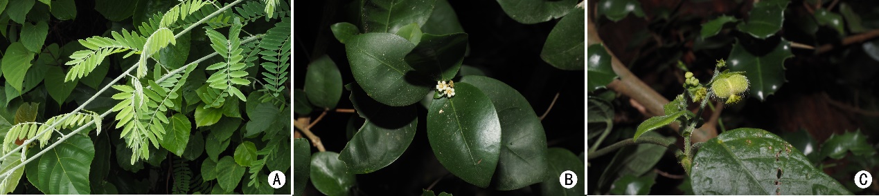 图3. A:小叶九里香;B:栗豆藤;C:刺核藤