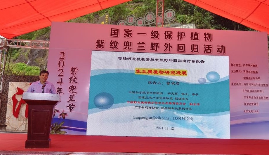 11月14日,国家一级保护植物紫纹兜兰野外回归活动在广东紫金白溪省级自然保护区顺利举行。活动由中国科学院华南植物园和广东紫金白溪省级自然保护区管理处共同主办,广东省林业局为指导单位,紫金县人民政府为支持单位,来自各单位的50余位代表应邀参加会议。
