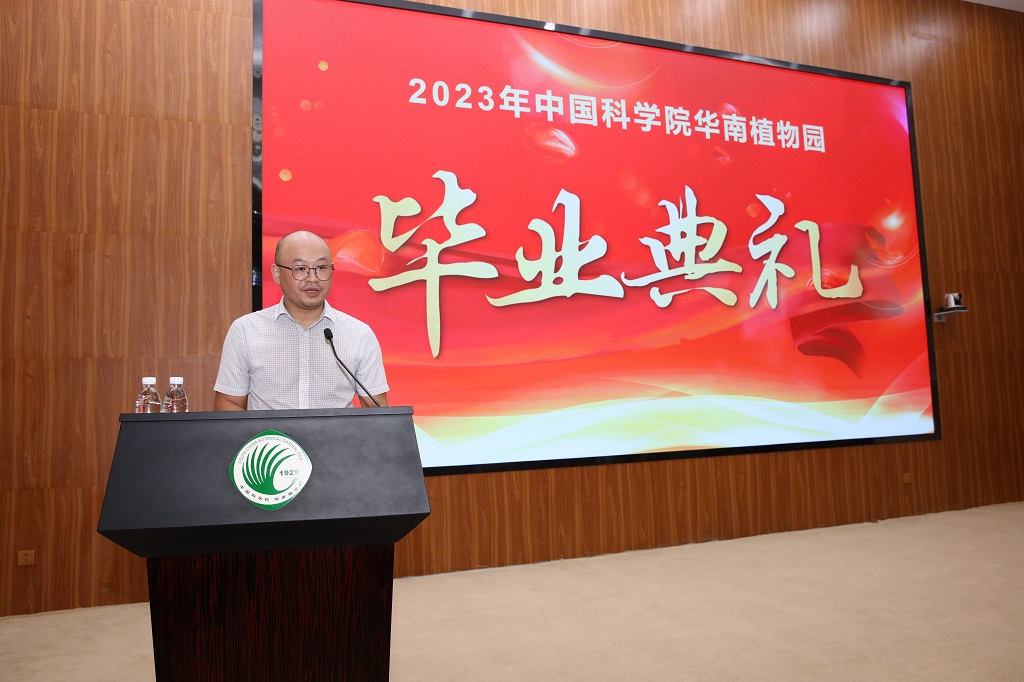 6月20日下午,中国科学院华南植物园2023届研究生毕业典礼在一号实验楼第一会议室隆重举行。今年共有138名研究生毕业,其中博士45名,硕士93名,包括4名留学生。园主任任海,副主任叶清,党委副书记、纪委书记徐海,部分学位委员会委员,研究生导师代表,管理部门负责人,毕业生及亲友代表等参加。典礼由叶清主持。