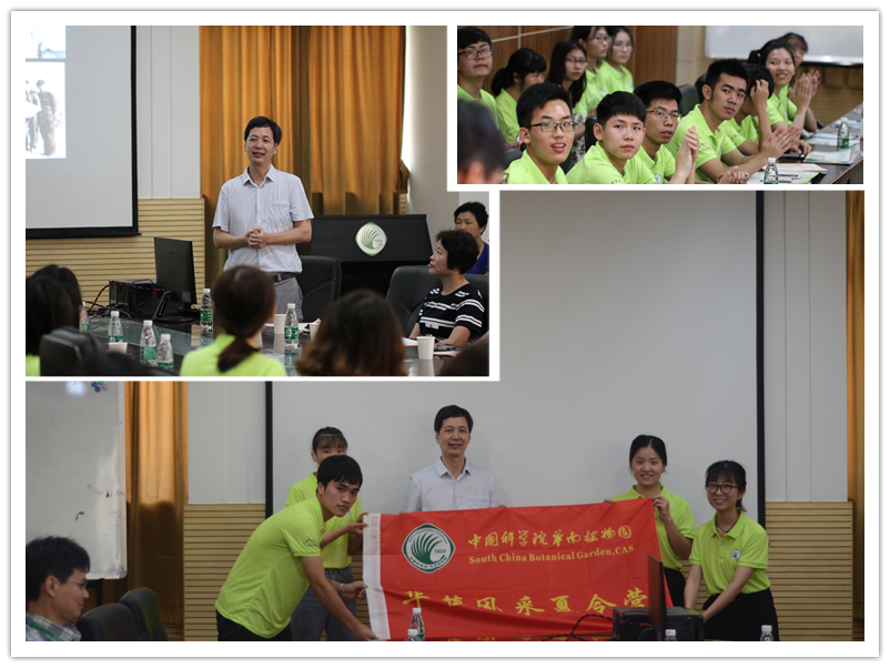 在7月17日的开营仪式上,由人事教育处赖志敏副处长主持,园领导任海主任代表华南植物园致辞,对来自全国的营员表示热烈的欢迎。他向大家全面介绍了植物园的历史与发展现状、学科布局、科研平台及设施、科研成果及产出、人才引进及培养、植物资源储备及迁地保育、科普教育及旅游开放等。任海主任指出,中国科学院是离科学最近的地方,随着未来中国科学院大学广州学院的建成,华南植物园还将会迎来新一轮的发展,成为华南地区重要的人才培养基地。随后,植物科学研究中心主任康明研究员、生态及环境科学中心主任叶清研究员、农业及资源植物中心主任王瑛研究员、分子生物分析及遗传改良研究中心副主任张明永研究员,分别介绍了各个研究中心的研究团队、研究方向、科研条件及研究生招生导师。最后,由营员代表接受营旗,标志着2018年华植风采夏令营正式开营。