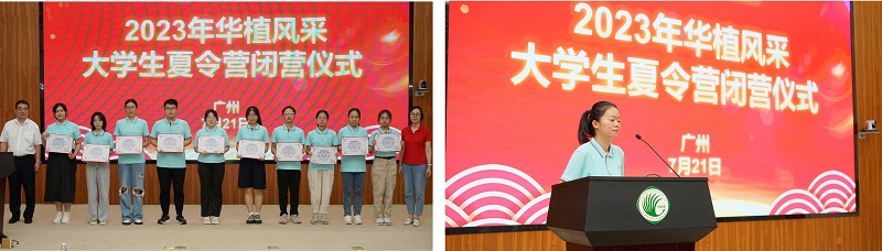 21号下午闭营仪式上,园党委副书记、纪委书记徐海和园党委委员、人事教育处处长龚晓萍共同为营员颁发结业证书,营员代表们分享了自己的收获和体会。徐海鼓励营员们未来加入华南植物园,以实际行动践行生态文明思想,为高标准建设华南国家植物园贡献青春和智慧。至此,2023年华植风采夏令营圆满结束!