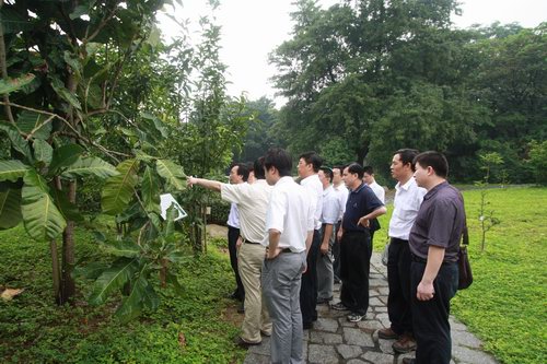 秦海等一行仔细倾听了情况介绍,并对华南植物园的园林功能布局、植物配置与养护以及植物保护和引种等方面工作给予高度赞赏。秦海表示,80年来华南植物园为我国的科学研究、植物保护和物种收集工作做出了应有贡献,目前进行的数字化植物标本、数字植物园的建设方面已形成重点突出、特色鲜明的研究方向,并在E-Science应用于植物园研究与管理方面开展了高起点探索,进一步提升了华南植物园的科研优势以及承担国家重点和广东省重大科研项目的能力。