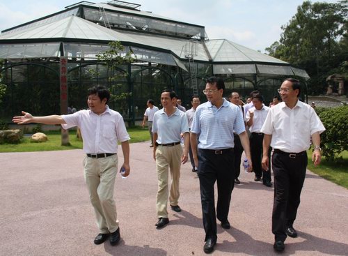 随后,许顺、何鑫一行在蚁伟民、蒋厚泉等的陪同下考察了大型景观温室群、苏铁园、兰园和药用植物园等功能园区和景点。考察团仔细倾听了情况介绍,并不时询问植物园在园林景观设计、科研进展及植物新技术的产业开发等情况。许顺表示,此次到华南植物园调研,看到植物园的飞跃发展深受鼓舞,希望双方加强科技合作,植物园的科学家和园艺专家们多为地方的绿化生态和科技转化出谋划策,为地方的科研与经济发展作出积极贡献。