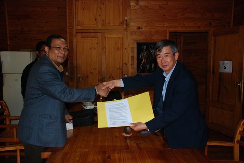 黄宏文主任和塔那那利佛大学水与林学系主任Ramamonjisoa Bruno Salomon教授共同签订合作备忘录