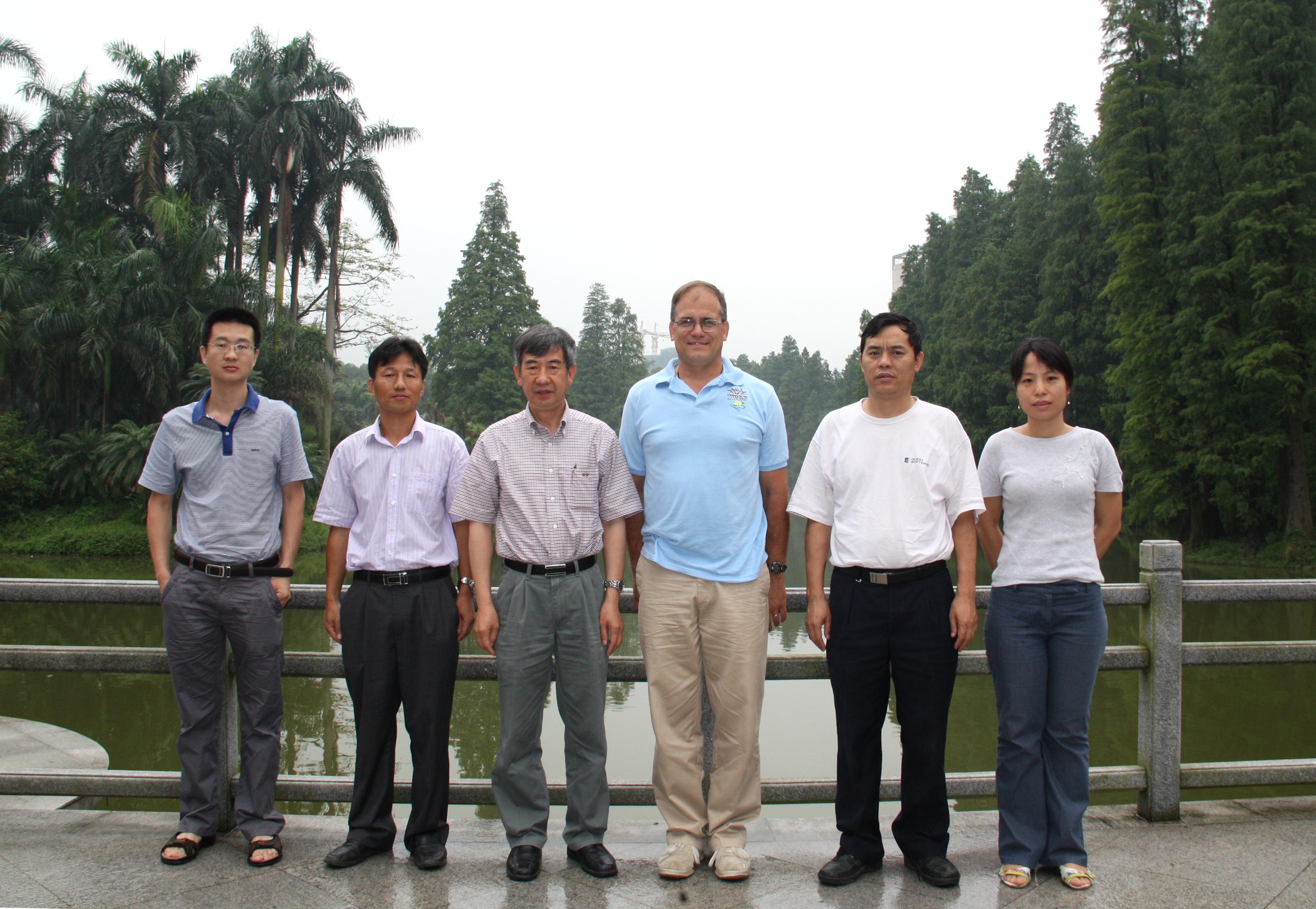 合影留念(左起:陈磊、田代科、黄宏文、Larry Nau、夏念和、黄瑞兰)