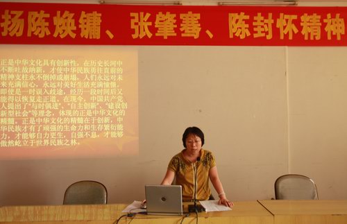 陈忠毅研究员在“创业、爱国、科学、奉献”的报告中以生动的事例和图片系统介绍了中国现代植物学研究奠基人—陈焕镛院士,一生奉献的学者—张肇骞院士,以及中国现代植物园奠基人—陈封怀教授的生平事迹,强调华南植物园要大力弘扬前辈的“艰苦创业、报效祖国、治学严谨、献身科学、忠诚爱国、奉献社会”的优良传统与文化,以求真务实的精神推动华南植物园的发展。吴德邻研究员在“缅怀前辈事迹,弘扬焕镛精神”的报告中介绍了陈焕镛院士在中国植物分类学、研究机构的建立及学术成就等方面的卓越贡献,以生动翔实的事例对陈焕镛院士的理想、创新、敬业精神进行了阐述。报告中提到,陈焕镛踏实的工作作风和严谨的治学态度、创业敬业精神永远值得我们学习,我们要学习陈老有理想、有远大目标的创业精神,学习他思想创新、脚踏实地的工作作风。园艺中心党支部、研究生党支部及管理部门党支部的蚁伟民和宋政平、胡建竹、李林军和方中明、俞海霞等分别就创新文化建设的体会、如何弘扬“三老”精神、弘扬华南植物园特色创新文化谈了自己的看法与体会。