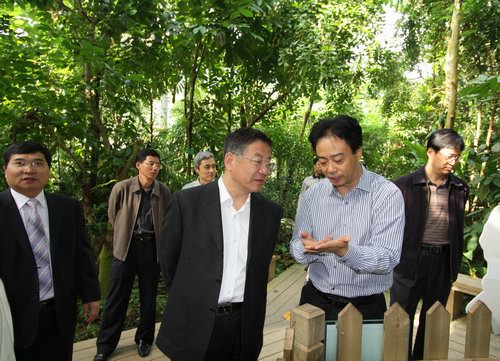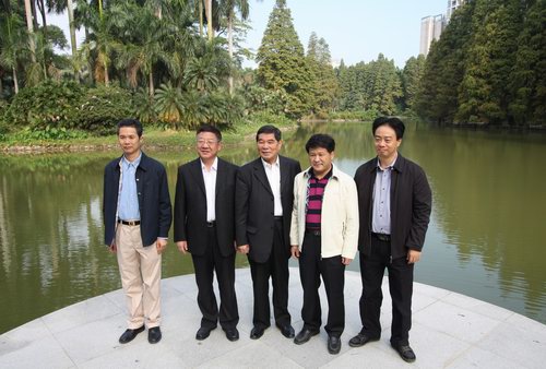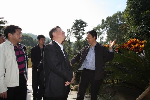11月12日,即在广州亚运会开幕当天,国家林业局副局长张建龙、党委副书记谭光明、副部级体协主席蔡延松、工会主席杨建新、巡视员王建子、高红电等一行6人,在广东省林业局党组书记、局长张育文,广东省林业局党组成员、巡视员陈俊勤,广东省林业科学研究院院长张方秋等陪同下到华南植物园进行参观与考察。