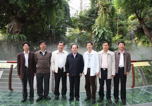 华南植物园党委书记任海对司马义?铁力瓦尔地一行的莅临表示热烈欢迎,并表达了黄宏文主任的问候。随后,司马义?铁力瓦尔地一行兴致勃勃地参观了大型景观温室群,认真察看了热带雨林温室的环境模拟、雨林景观的营造和奇特的植物布局,以及沙漠植物室、高山/极地植物室、奇异植物室及植物水族馆等温室景区,还参观了正在展出中的“帝王花展”,为如此美丽的帝王花在亚运之际全面绽放赞叹不已。司马义?铁力瓦尔地不时提出各种问题,就园艺布局、植物养护等话题与陪同人员进行交流,并和大家多次合影留念。参观结束后,司马义?铁力瓦尔地还用汉语和维吾尔语两种文字在嘉宾簿上签名留念。