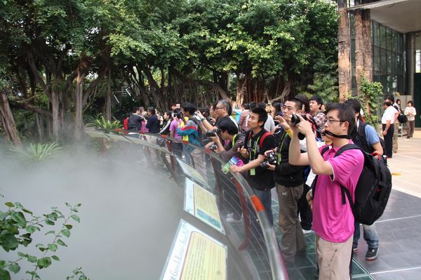 11月29日,由中央电视台(50人)以及港、澳、台和印度等多家媒体的海内外记者60余人组成的记者团专程赴华南植物园进行了参观与采访。华南植物园园艺中心常务副主任蒋厚泉等领导接待了热情接待了媒体并陪同参观与采访。