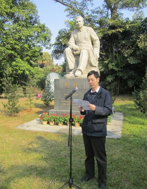 1月16日上午,纪念陶铸同志诞辰103周年仪式在华南植物园陶铸同志雕像前隆重举行。华南植物园党委书记任海、副主任魏平、主任助理夏汉平,以及职工、保卫人员、研究生和离退休老同志代表等50余人参加了纪念仪式。