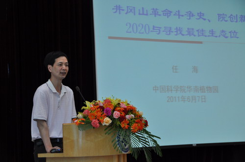 应两院团工委的邀请,华南植物园党委书记任海在报告会上作了《井冈山革命斗争历史、院创新2020、寻找最佳生态位》的主题报告。任海的报告以历史时空为主线,阐述了井冈山根据地成功的原因和历史经验,以独特的视觉解读了老一辈共产党人留下的井冈山精神,并与“院创新2020”、“寻找最佳生态位”进行有机联系,鼓励团员青年在现实中找好最佳生态位,实现自己的人生价值。