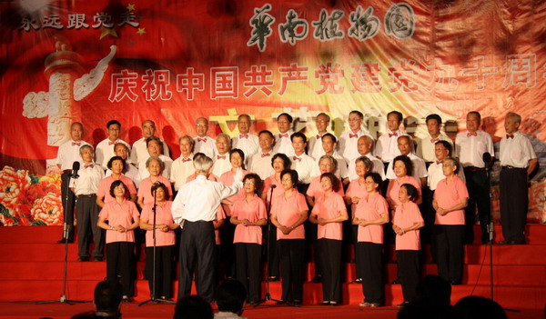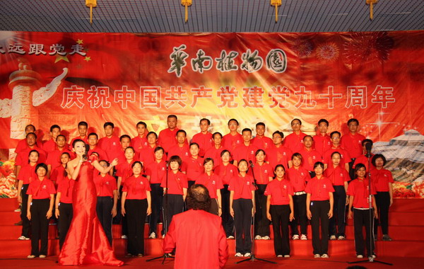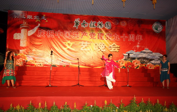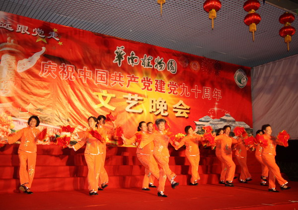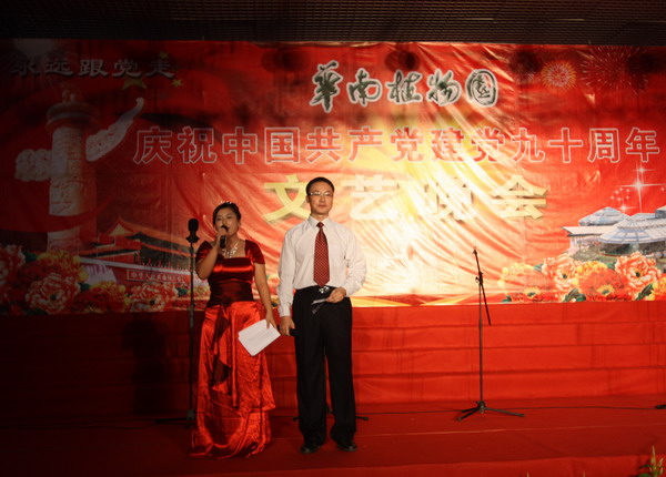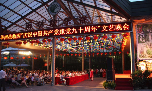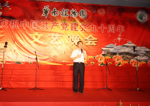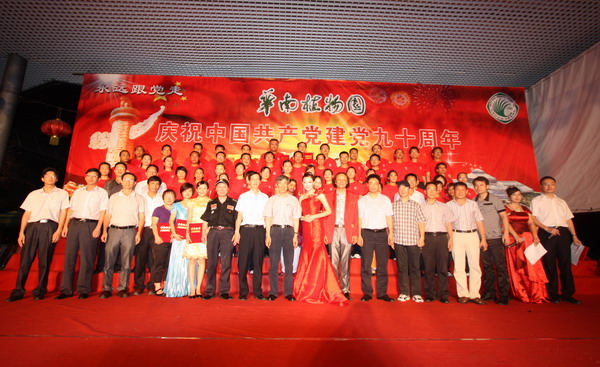 6月24日晚,华南植物园在展览温室前舞台举行了“永远跟党走——华南植物园庆祝中国共产党建党90周年文艺晚会”。园领导黄宏文、任海、魏平、傅声雷,党委委员邢福武、夏汉平、范德权及园主任助理蚁伟民与党员、职工群众600余人欢聚一堂,隆重纪念中国共产党成立90周年。