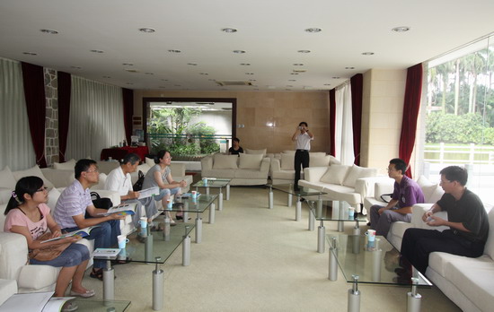 座谈会上,夏汉平首先对唐清华一行的到来表示欢迎,并简要介绍了华南植物园的基本情况。唐清华表示,此次访问贵园主要是学习和交流水生态修复技术,希望通过交流,学习华南植物园水生植物的物种选择和种植维护技术,生态群落构建、河涌及人工湿地系统的建设经验,以及生态系统健康评价等研究领域的先进经验与科研成果。