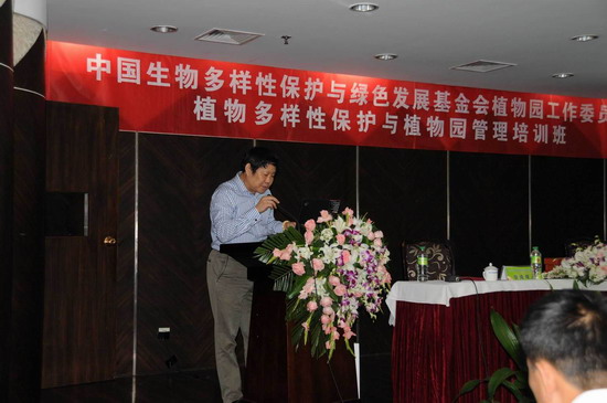 在举办学术年会的同时,中国生物多样性保护基金会于9月6日上午举办了“2011年植物园园长培训班”,邀请国内知名专家和学者就植物保育、研究、应用、科普教育和管理等与植物园的发展等密切相关的问题进行培训,到会的全国植物园系统中层干部、业务骨干、科研科普与管理人员参加了培训。中国科学院“十一?五”科学传播先进个人称号获得者、园艺中心常务副主任、科普策划总工蒋厚泉受大会邀请为本次园长培训班作了题为“植物园科普品牌策划与例析”的大会报告。报告以华南植物园科普开放的实践活动为例,生动阐述了科普活动的创新策划,如何加强与媒体合作,多层次多角度宣传科普,开展形式多样的科普活动,以及如何将科普教育与旅游有机结合等内容。报告中的创新思维得到主办方和参会代表的广泛称赞。