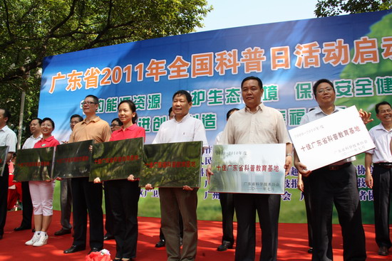 9月17日,广东省2011年“全国科普日“活动启动仪式在广州举行。仪式上华南植物园园艺中心常务副主任、科普策划总工蒋厚泉代表华南植物园领取2009-2010年度“十佳广东省科普教育基地”奖牌、奖状。