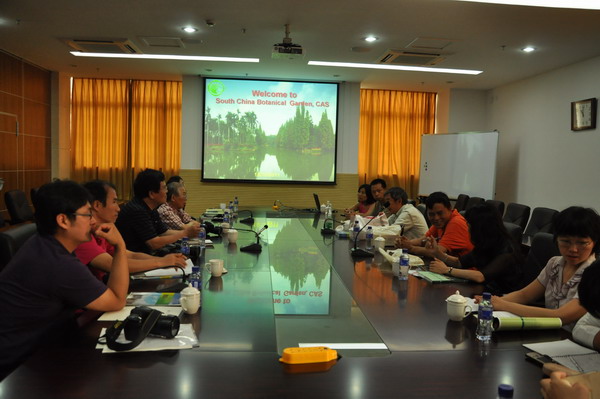 华南植物园主任黄宏文、党委书记任海及BGCI中国项目办公室和园艺中心等相关负责人热情接待了代表团一行并开展会谈。黄宏文首先向代表团简单介绍了华南植物园的概况、研究领域和未来的发展规划。代表团随后就中国植物保护战略的起草和制订、现在的执行情况、中国植物园就中国植物保护战略的分工合作、执行过程中的问题以及未来的工作等方面与华南植物园进行了深入探讨。