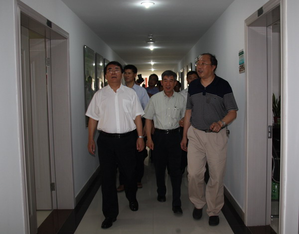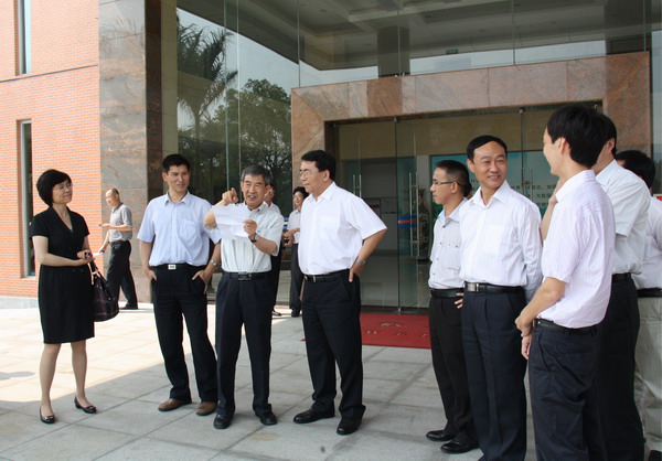 黄宏文(左三)向白春礼(中)汇报园区建设“十二五”规划