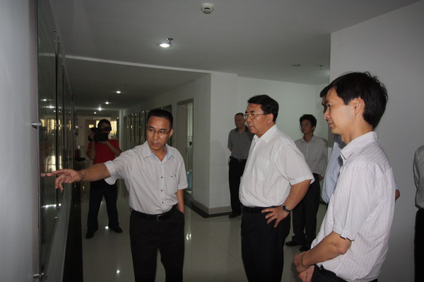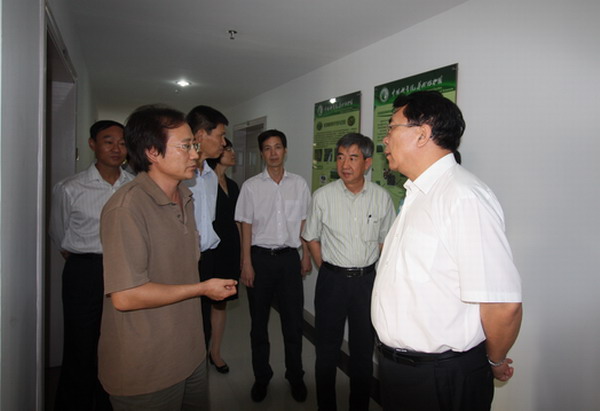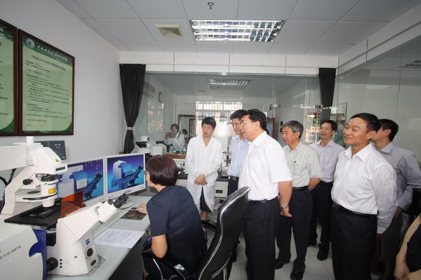 随后,白春礼一行重点考察了华南植物园实施三个重大突破和五个培育方向的实验室。在新综合实验大楼各层的专业实验室里,5位首席科学家吴国江、区永祥(David Ow)、叶万辉、莫江明和傅声雷研究员先后向白春礼介绍了各自的研究方向和科研成果,特别是在植物转基因工程、新品种培育、环境治理与生态安全等方面的最新研究进展。白春礼认真听取了汇报,不时与科研人员亲切交谈,并对人才引进、知识产权保护等方面给出了指导性意见。
