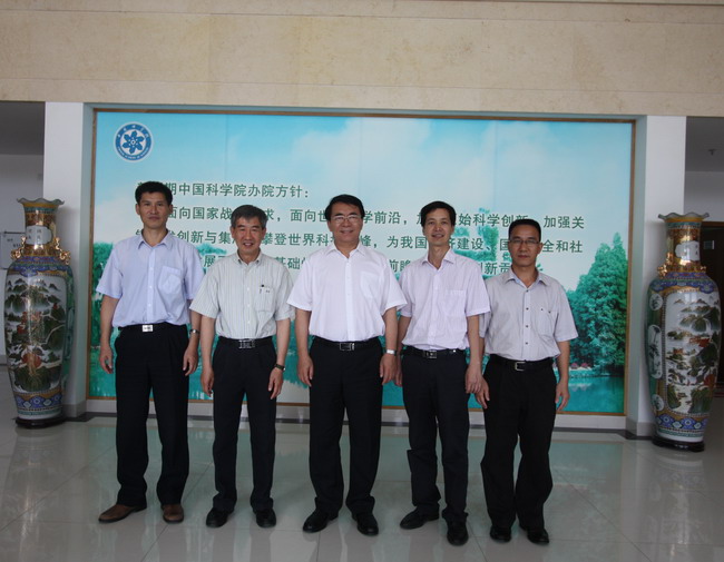 院领导和园领导合影留念(左起:詹文龙、黄宏文、白春礼、任海、傅声雷)