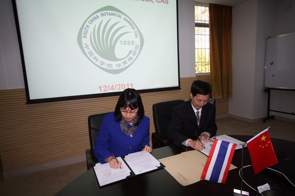 12月4日,泰国清迈诗丽吉王后植物园副主任Suyanee Vessabutr博士一行访问华南植物园,并与华南植物园党委书记、副主任任海一起代表两园签订未来五年的合作备忘录。经过一年的准备,两园在今天签下合作备忘录,为未来的合作开展提供了良好的基础和保障。未来五年,两园将在科学研究、科普教育、园林园艺、研究生培养、职员培训等方面全面开展学术交流与战略合作。