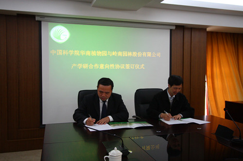 12月31日,华南植物园与岭南园林股份有限公司产学研合作意向性协议签订仪式在植物园实验大楼举行。