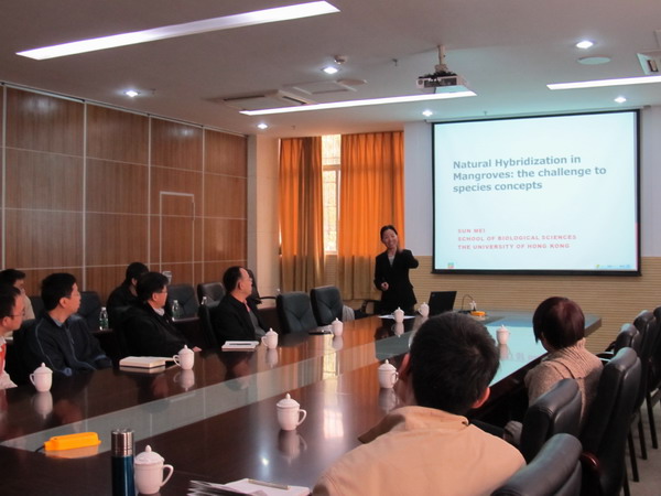 访问期间,孙梅教授做了题为“Natural hybridization in Rhizophora and Bruguiera: three evolutionary scenarios”的学术报告,孙梅教授详细介绍了她对世界范围内红树科两个重要类群红树属和木榄属物种自然杂交和遗传渐渗的研究结果,深入阐述了地理隔离在自然杂交和遗传渐渗格局形成中的进化意义及引发了对物种概念的思考。报告内容丰富,现场气氛活跃,大家就物种形成研究的前沿及其发展趋势展开了深入讨论和交流。
