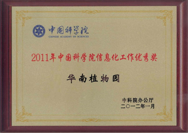 近日,中科院信息化工作领导小组办公室公布了“2011年度中国科学院信息化评估报告”结果,对全院信息化管理和信息化应用方面工作进入前10名的单位颁发了“信息化工作优秀奖”。华南植物园榜上有名,被评为A类单位,荣获“2011年中国科学院信息化工作优秀奖”。华南植物园连续两年获此殊荣。