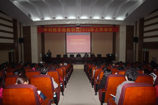 园主任黄宏文作了“华南植物园2011年主要工作进展及2012重点工作部署”的报告。报告回顾、总结了华南植物园“十二五”开局年的科研进展、人才队伍建设及培养、科研设施能力及平台建设、植物资源储备及迁地保育、资源发掘与利用、科普教育与旅游开放、国际合作及拓展、党务及创新文化建设等8个方面的工作情况。同时报告中详细分析了当前形势与面临的任务,他表示华南植物园必须聚焦战略重点、实现重大创新突破,明确‘三位一体’的战略使命,以“一三五”规划为抓手,着力促进重大产出。亟待解决的深层次问题有:重大科学原创性成果少,系统认知、提出新科学思想或系统解决方案能力弱;领军人才和青年科研骨干不足,队伍结构不合理;成果转换机制不完善,与经济和教育结合不紧密;资源配置和评价激励不合理,科研人员安心致研的制度与文化环境需完善。