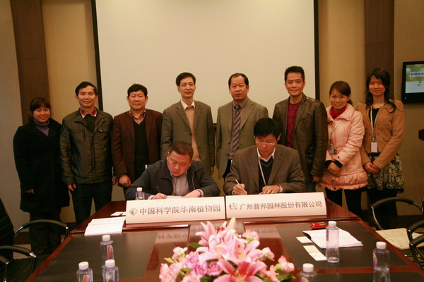 3月9日,华南植物园与广州普邦园林股份有限公司意向性合作协议签约暨普邦园林奖学金设立仪式在广州举行。华南植物园合作交流处处长王克亚代表该园签署了协议,园党委书记任海、邢福武研究员、园艺中心执行主任蒋厚泉、普邦园林董事长涂善忠、副董事长黄庆和、园林规划院院长谭广文等参加签约仪式。