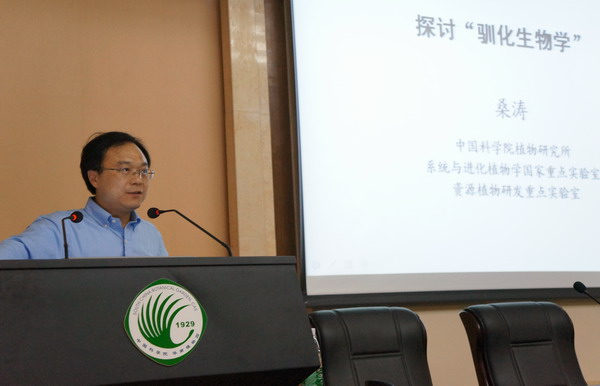 本次报告会共邀请3位国内知名专家作学术报告。4月16日,中科院植物研究所桑涛研究员做了题为“驯化生物学”的报告,基于我国国情和种质资源现状,探讨了第二代能源作物芒草经过人工驯化后在应对控制化石能源消耗、生态安全和粮食安全的可能性。4月20日,中科院动物研究所康乐院士做了题为“飞蝗两型转变的分子机理”的报告,从基因组和代谢组水平阐明了飞蝗散居型和群居型之间转变的分子机理,证明了嗅觉感受蛋白基因和多巴胺代谢途径在飞蝗转变的启动和维持过程中起关键作用;中科院昆明植物研究所郝小江研究员做了题为“粉花绣线菊复合群的化学与生物学研究”的报告,以粉花绣线菊复合群中主要化学成分二萜及二萜生物碱为主题,从提取分离、结构鉴定到生物合成、结构改造、化学分类学等系统的化学研究工作。