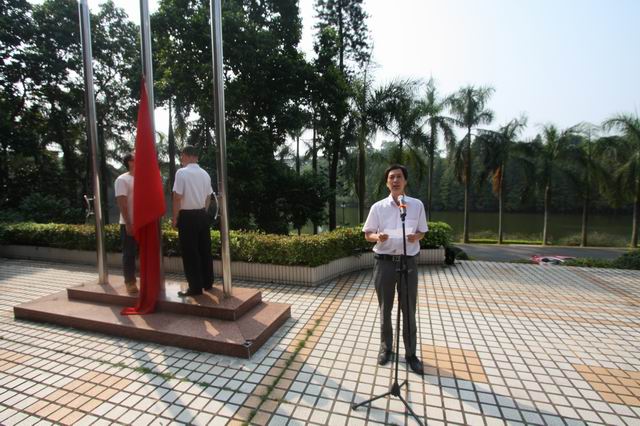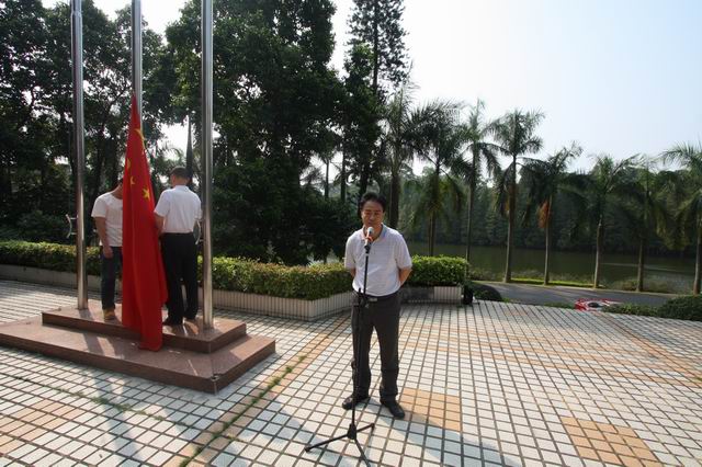 在升旗仪式前,任海作了讲话。他代表以黄宏文主任为班长的园党政领导班子,向全园职工、同学和离退休老同志,致以节日的问候!向那些为实现中华民族的独立和解放、为新中国建立、建设、改革和发展作出贡献的老一辈革命家、革命先烈和建设者们,表示最崇高的敬意!向长期以来支持华南植物园发展的各部门领导和社会各界人士表示衷心的感谢!并代表因公出差的黄宏文主任祝愿同志们身体健康、家庭幸福、节日愉快。