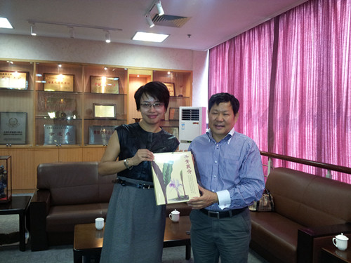 蒋厚泉代表华南植物园对陈村花卉世界的热情接待表示感谢,并表示下一阶段将加大对经济植物育成中心的支持力度,在资源的利用、科研成果转化、技术的交流、人才的培训、经营管理、科普宣传等方面全面加强合作,进一步推动院地合作项目的发展。会后,蒋厚泉向周悦赠送了刚出版发行的《丹青囊荷》一书。