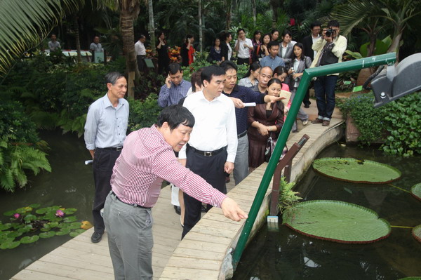 随后,石奇珠一行还参观了展览温室群景区,他对华南植物园融合古今的园林造景、丰富多彩的植物种类和深厚的文化底蕴赞赏不已。他希望天河区委区政府和华南植物园就天河区如何打造“花城、绿诚、水城”和“世界历史文化名城”的规划设计、品牌营造、平台建设等方面进行深入的交流与合作。