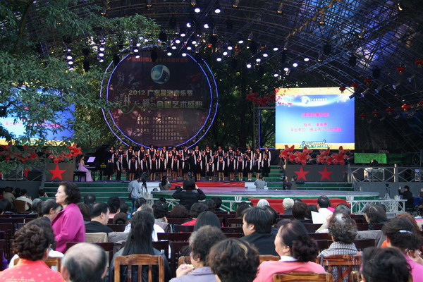 为庆祝中国共产党十八大胜利召开,由中共广东省委宣传部批准,广东省文学艺术联合会、广东省音乐家协会共同主办,中科院华南植物园、广东省合唱协会、广东省合唱联盟协办的2012广东星海音乐节“森林天籁”合唱艺术盛典于12月8日在华南植物园隆重举行。
