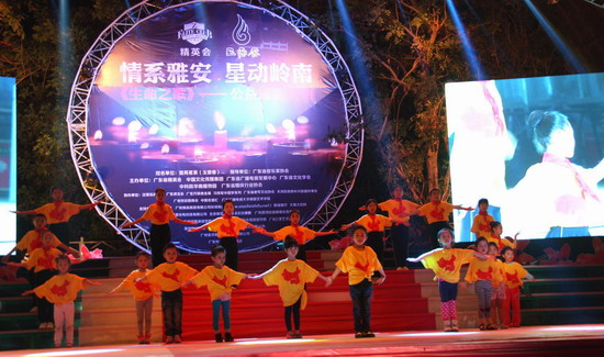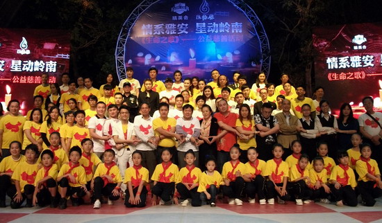 4月27日晚,由中科院华南植物园、中国文化传媒集团、广东省音乐家协会、广东省广播电视发展中心、广东省文化学会、广东省精英会等8家单位和20多家媒体联合举办的以“情系雅安—星动岭南《生命之歌》”为主题的大型公益慈善晚会在华南植物园园艺中心隆重举行。来自全国的影视歌明星,以及企业界、政界、军界、佛教界以及民间社团的800多位爱心人士参加了活动。华南植物园主任助理蚁伟民、园艺中心执行主任蒋厚泉等领导参加晚会。