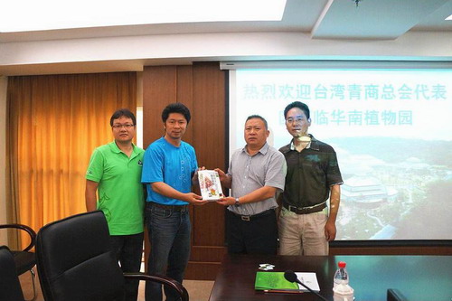 6月8日,台湾青商会常务副会长黄健信等一行在广州市人民政府台湾事务办公室领导同下访问华南植物园,并就有关项目的合作进行座谈。华南植物园合作交流处副处长王克亚、园艺中心执行主任蒋厚泉、副主任熊秉红等接待客人。