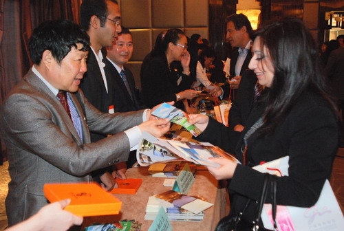 中国驻以色列大使高燕平、商务参赞胡明出席在特拉维夫举行的旅游推广活动会,并亲临华南植物园推介展示位,详细了解华南植物园的旅游资源,对亚洲最大的世界植物奇观“展览温室群景区”充满兴趣。希望华南植物园与以色列相关旅游景区做到沟通交流与合作。华南植物园充分利用这一难得的旅游推广活动机会,将该园优秀的旅游资源向中外媒体、旅游客商、当地民众展示。制作精美的科普宣传手册、宣传挂画受到热捧,耐心细致的推介向民众传递着“都市旅游异彩纷呈,华南植物园美景非去不可”的理念。