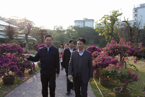 12月21日,中直机关工委副书记李勇在广东省直机关工委副书记董励国、省直团工委书记李田以及中科院广州分院领导陪同下调研华南植物园。华南植物园副主任魏平等热烈接待了来宾。