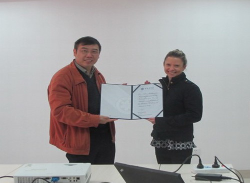 最后,罗达教授代表中科院授予Hayward 博士“中国科学院外籍青年科学家”证书。