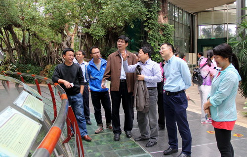 11月15日,湖北省科协副巡视员王东风和普及部部长余永东、黄冈市科协主席胡建伟、随州市科协主席苏轩及科普基地代表一行10人赴华南植物园调研学习。华南植物园主任助理蚁伟民,园艺中心执行主任、广州科普基地联盟副理事长蒋厚泉及有关部门负责人热情接待了代表团一行。