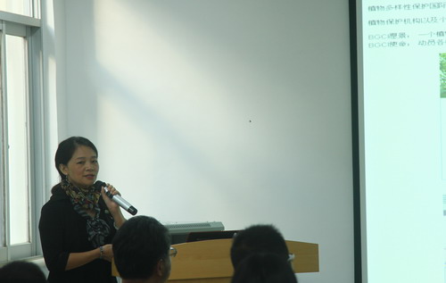 学术年会上,黄宏文研究员作了题为《植物引种驯化对近代500年人类文明史的影响》的特邀大会报告,阐述了植物引种驯化及其广泛栽培深刻改变了世界农业生产的格局,对促进人类社会文明进步产生了深远影响;廖景平研究员以《中国植物园调查:基本现状与发展对策》为题,介绍了中国植物园的基本情况以及在物种迁地保育、资源发掘利用和科普教育方面的调查结果,并对中国植物园未来发展提出了建议;张林海研究员以《植物园在应对未来粮食安全可以发挥更大的作用》为题,介绍了植物园加强农作物野生近缘种及优异遗传资源的引进、保护及发掘利用工作,对解决环境问题和粮食危机具有重要意义;文香英女士作了题为《BGCI与中国植物多样性保护——BGCI中国保护项目进展》的报告。华南植物园代表团还围绕专类园建设、迁地志编撰、植物引种保育评价等方面作了专题报告,分别介绍了水生植物园生境营造和展示水生植物多样性的技术、中国迁地栽培植物志的编研进展与在线编撰系统以及木兰科植物迁地保育的评价方法。湛青青博士的报告《<中国迁地栽培植物志>与在线编撰系统》荣获了“优秀青年报告”奖。