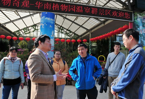 12月21日,南宁市青秀山风景旅游区安监局局长丁传兰率团访问华南植物园。华南植物园主任助理蚁伟民、园艺中心执行主任蒋厚泉和有关部门负责人热情接待了代表团一行。