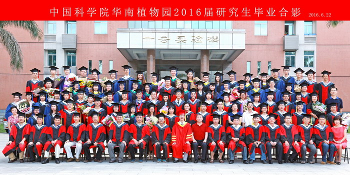 最后,在雄壮的《毕业歌》声中,2016届华南植物园毕业典礼圆满落幕。出席典礼的园领导、毕业生导师以及全体毕业生在实验楼前广场合影留念,庆祝同学们顺利毕业!祝愿所有的毕业生一路平安,前路灿烂!