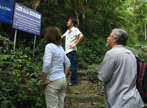 随后,Dr. Yves Bergeron和 Dr. Francine Tremblay在黄建国研究员的陪同下参观了鼎湖山国家级自然保护区、生态定位站及相关正在开展的实验。参观过程中,还为两位专家详细介绍了鼎湖山野外观测站的地理条件以及科研作用,并一起进行了实验样地考察。